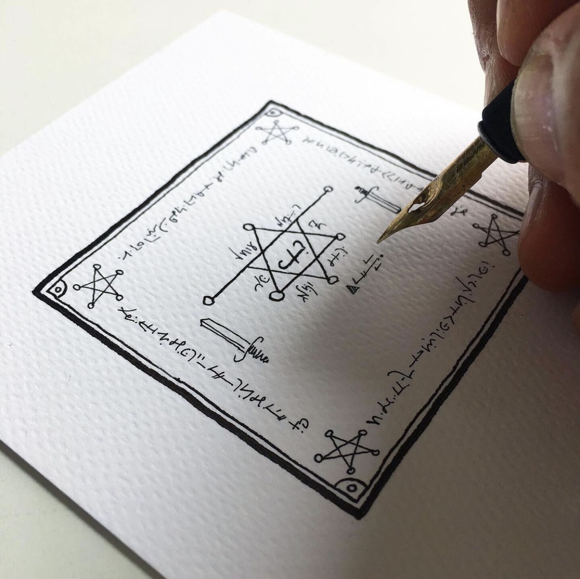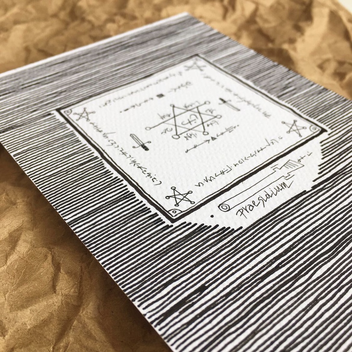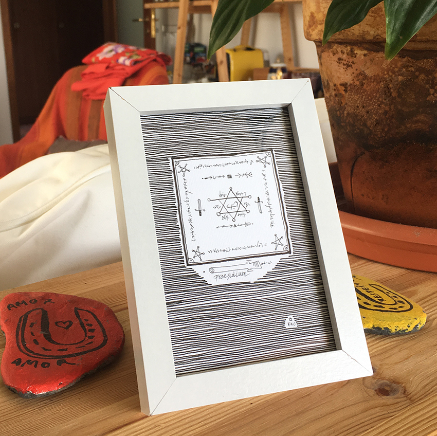 Este es un dibujo de viejos magos de la Edad Media que he rescatado y redibujado con elementos que crean esa sensación de Poder, Voluntad, Acción y Cuidado para el día. Es de una energía muy sutil que te darás cuenta de su poder cuando sientas más energía y vigor al comenzar las mañanas. Con más ganas, acción de concretar, de decidir y de tener pasión, o al menos el impulso a hacer lo que tienes que hacer. También, en algunos casos, permite sentir la sutil energía del atrevimiento de romper con lo desagradable e ir por lo armonioso. Característica: Reproducción con aplicación de acuarela a mano. Tamaño 13cms x 19cms. No incluye moldura. Sólo el dibujo en papel de acuarela. Incluye envío por correo normal.